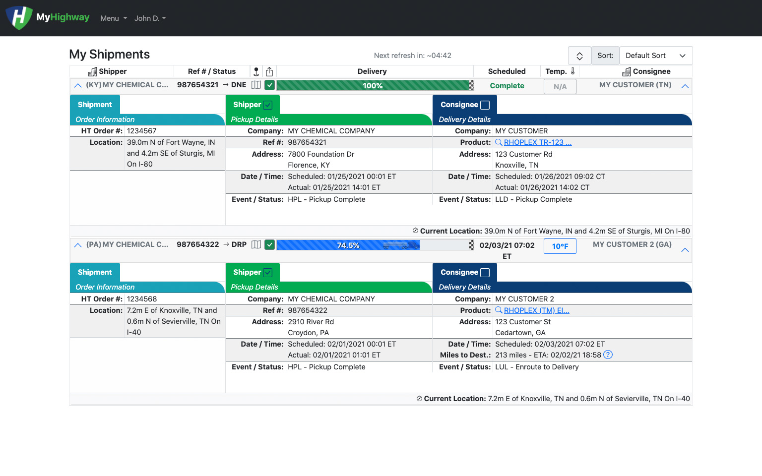 Every Highway Transport customer receives access to TempTrack™ through their MyHighway portal. Simply register for a free account, log in online or through the mobile app, and access up-to-date information about your shipments anytime from anywhere.